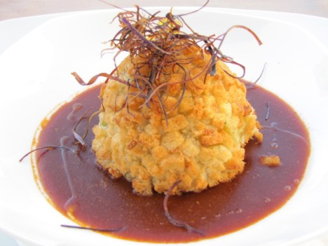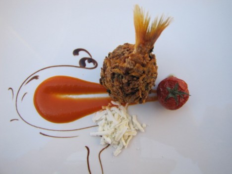 Arancino di spatola in salsa di crostacei e pepe lungo di Java.