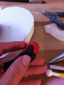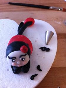 Con pochissima pdz nera formo le antenne , e una rosellina con la pdz rossa che metterò lateralmente alle stesse.