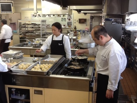 La preparazione per il prossimo seminario avviene proprio nelle cucine dell’Hotel: incontro quindi l’executive chef, un piccoletto con i baffetti da cartone animato giapponese!