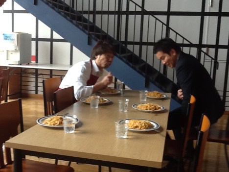 La preparazione è stata davvero armoniosa e quasi rilassante…tutto tranquillo ed organizzato se non consideriamo i due polipi! Per fortuna, lo chef che avevo al mio fianco, ha una bella ed importante esperienza alle spalle: ha vissuto e lavorato in Italia ed ha incamerato talmente tante di quelle cose della nostra cultura che, se non avesse i tratti somatici da orientale, direi che potrebbe essere un italiano trasferitosi in Giappone.