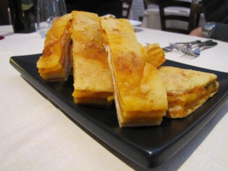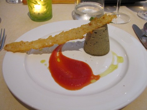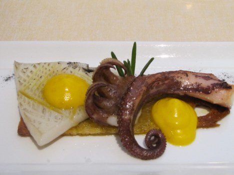 L’insalata di mare 2012 con crema di carote e riduzione di salsa di soia su croccante di pane conquista definitivamente il mio palato, eccezionale il sentore di affumicato nel polpo, particolare ma azzeccata la scelta di abbinarvi una crema di carota.