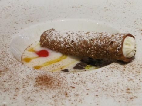 Il cannolo dell’Oste e il Sacrestano 2012 su latte di mandorla, realizzato grazie alle ricette tramandate dalla famiglia, è friabile, delicato e gustoso al tempo stesso.