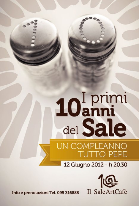 Il Sale Art Cafè di Catania compie dieci anni e per festeggiare il traguardo raggiunto, martedì 12 giugno, festeggia all’insegna del gusto e dell’arte culinaria. L’appuntamento è, quindi, in via S. Filomena alle ore 20.30. Per quanti, in questi anni, hanno “assaggiato” l’evoluzione culinaria del Sale Art Cafè, contribuendo a renderlo un successo, ecco come si svolgerà’ l’evento: