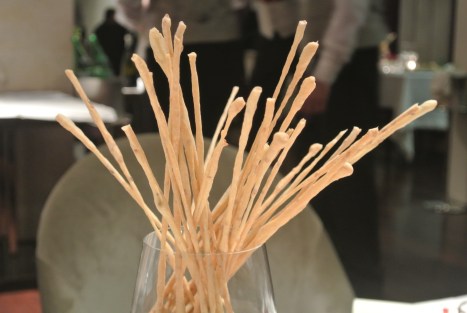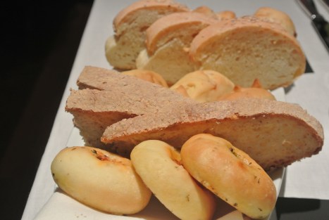 Giunti al nostro tavolo, mentre leggiamo il menu’ assaggiamo dell’ottimo pane servito in diverse varieta’ e dei grissini al sesamo superlativi.