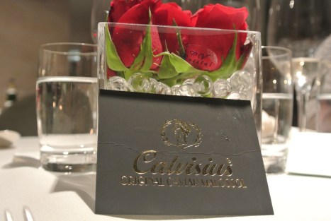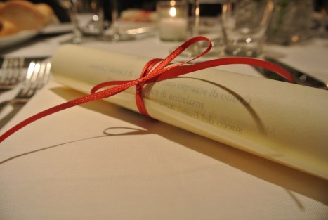 Ci godiamo la vista ascoltando la musica che accompagna l’aperitivo e sorseggiando la nostra flute di Champagne ed eccoci prondi per andare al ristorante qualche piano piu’ giu’.