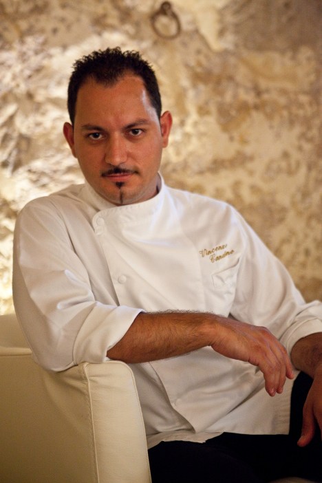 Vincenzo Candiano, 32 anni, da 10 lo chef della Locanda don Serafino a Ragusa Ibla (RG), diplomato all’Istituto Alberghiero di Modica, nel curriculum unica esperienza famosa uno Stage nel ristorante bistellato Da Caino nel 2006 per poco più di tre settimane, per gentile concessione della Chef Piccini .
