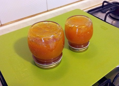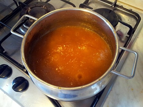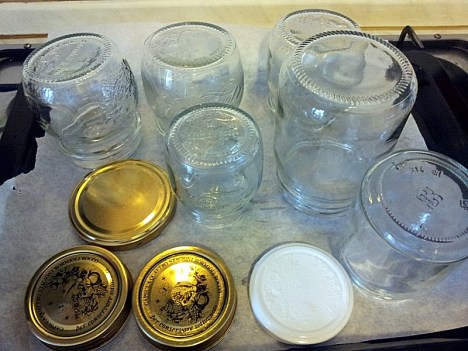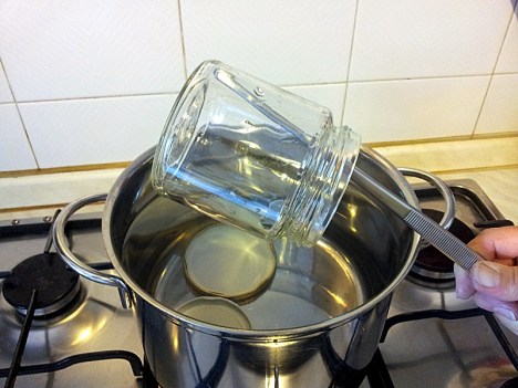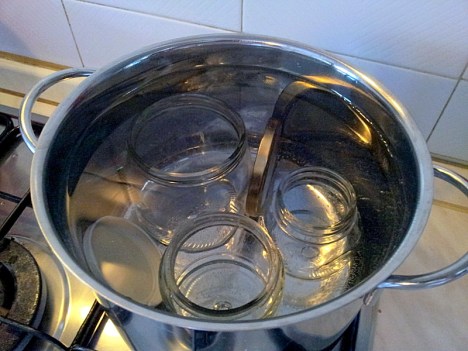 Nel frattempo sterilizzate i vasetti ed i tappi ponendoli, dopo averli lavati, in una pentola dal fondo spesso, copriteli con acqua e portate ad ebollizione a fuoco vivace e dopo aver abbassato la fiamma, lasciate sobbollire per 30’.