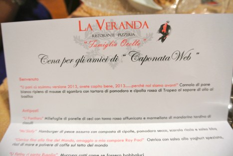 altra sorpresa, un bellissimo menu’ studiato apposta per noi e dedicato a CaponataWeb (anche questo apprezzatissimo);