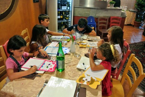 Appena arrivati, troviamo ad accoglierci Jessica, la moglie di Ciro, che ci accompagna al nostro tavolo e ci inizia a coccolare con una serie di sorprese: la prima, graditissima, delle simpatiche lavagnette per tutti i nostri bimbi (Bonus come si direbbe in una guida)