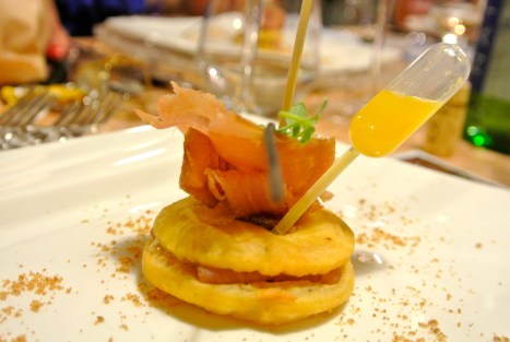 Arriva Ciro che ci inizia a parlare del menu’ che ha pensato per noi, il tempo di un aperitivo ed ecco la prima portata: